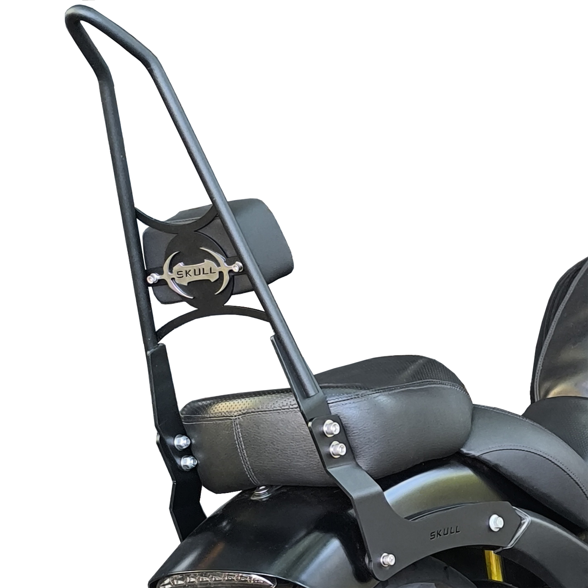 Os Sissy Bars da Skull Custom têm design exclusivo e contam com as melhores técnicas de fabricação e materiais de máxima qualidade: barras redondas maciças de aço carbono com 16 mm e chapas de aço carbono especial com 5 mm de espessura, proporcionando durabilidade e segurança.