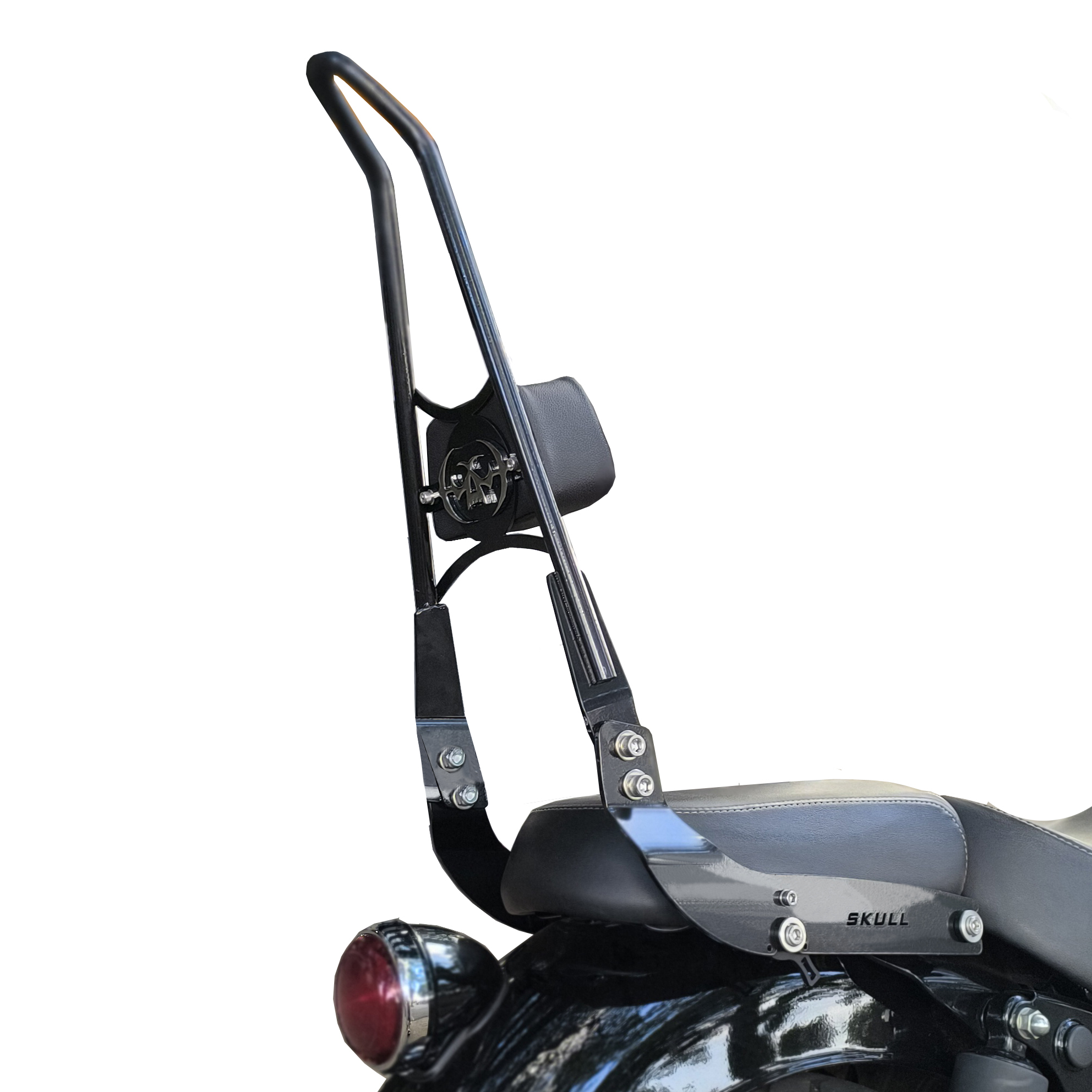 Os Sissy Bars da Skull Custom têm design exclusivo e contam com as melhores técnicas de fabricação e materiais de máxima qualidade: barras redondas maciças de aço carbono com 16 mm e chapas de aço carbono especial com 5 mm de espessura, proporcionando durabilidade e segurança.